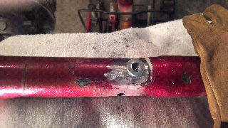 Damn I hate drilling or sanding paint off this frame, but rather than have my tank break off going down the highway, this was a necessary evil. Pat machined me some bungs for the backbone and I drilled out and welded them in tonight. Everything went together nicely and this should be good for many miles to come. One more thing off the list.